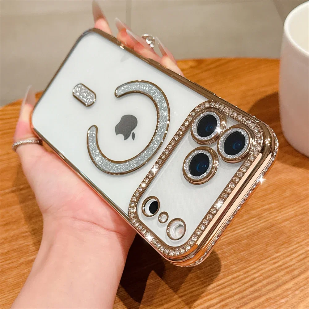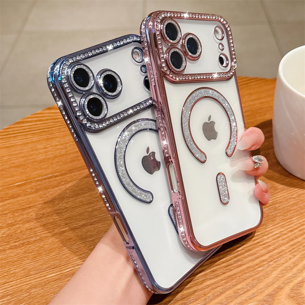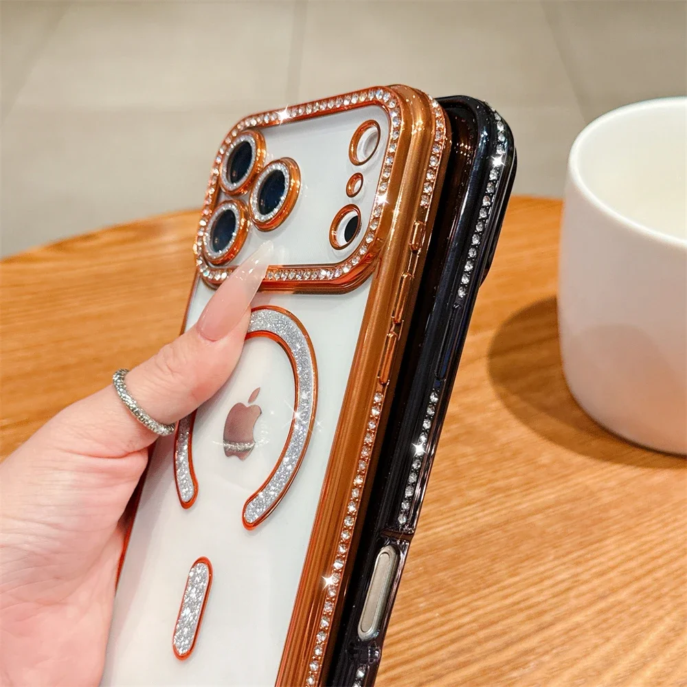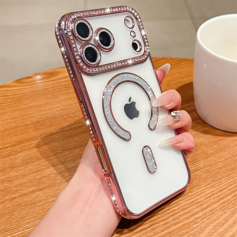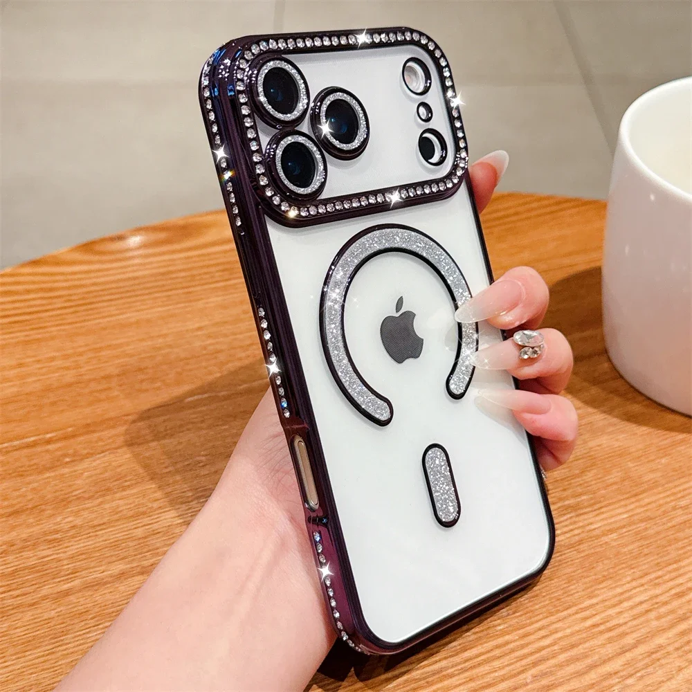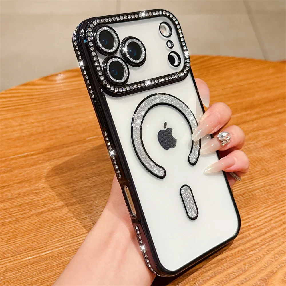 Bling Crystal Lens Film Transparent For Magsafe Magnetic Wireless Charging Case For iPhone 17