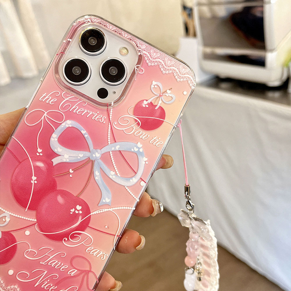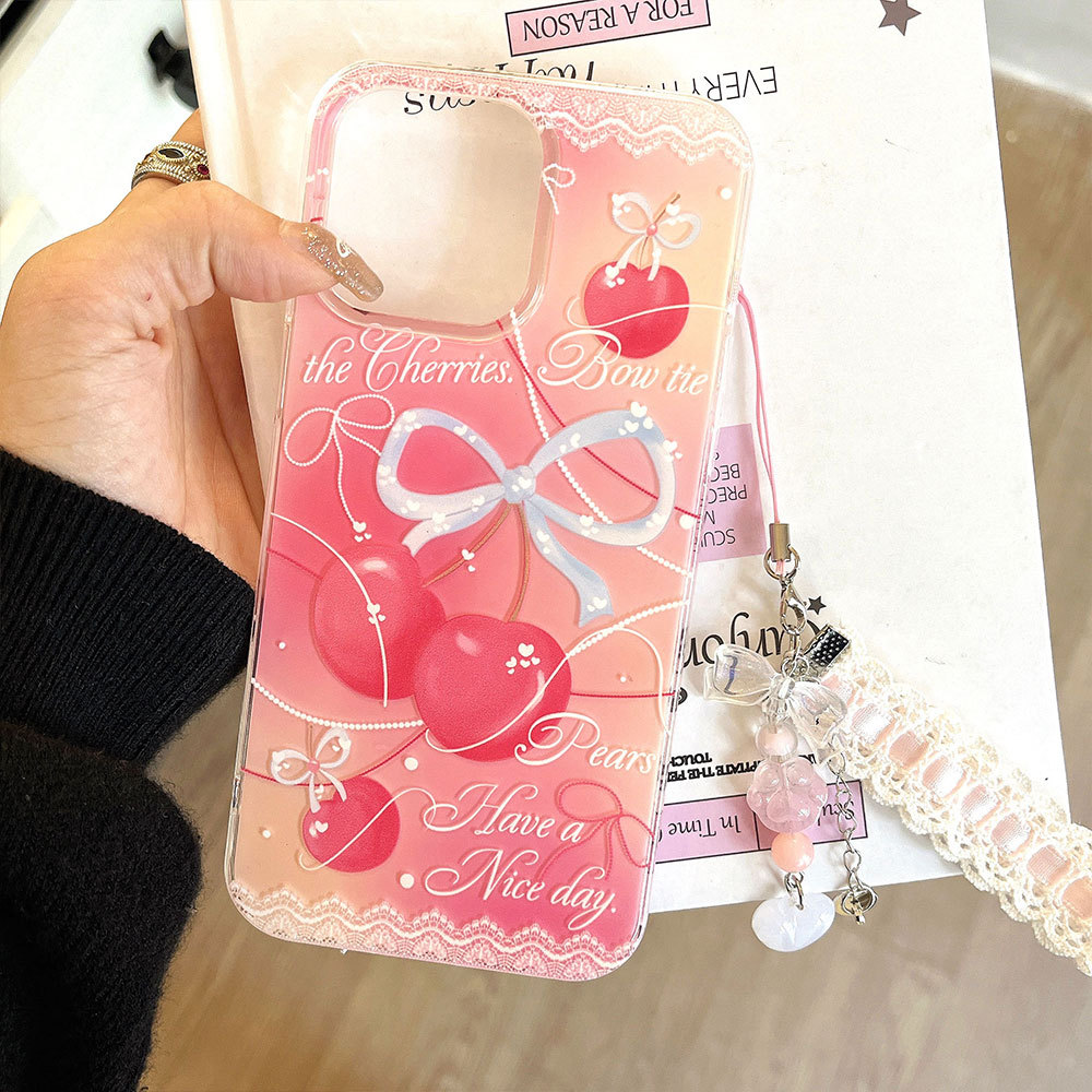 Cherry Lace Protective Case Suitable for IPhone 17PM Bow Case IPhone 16 15 14 13 12 11 Xr X