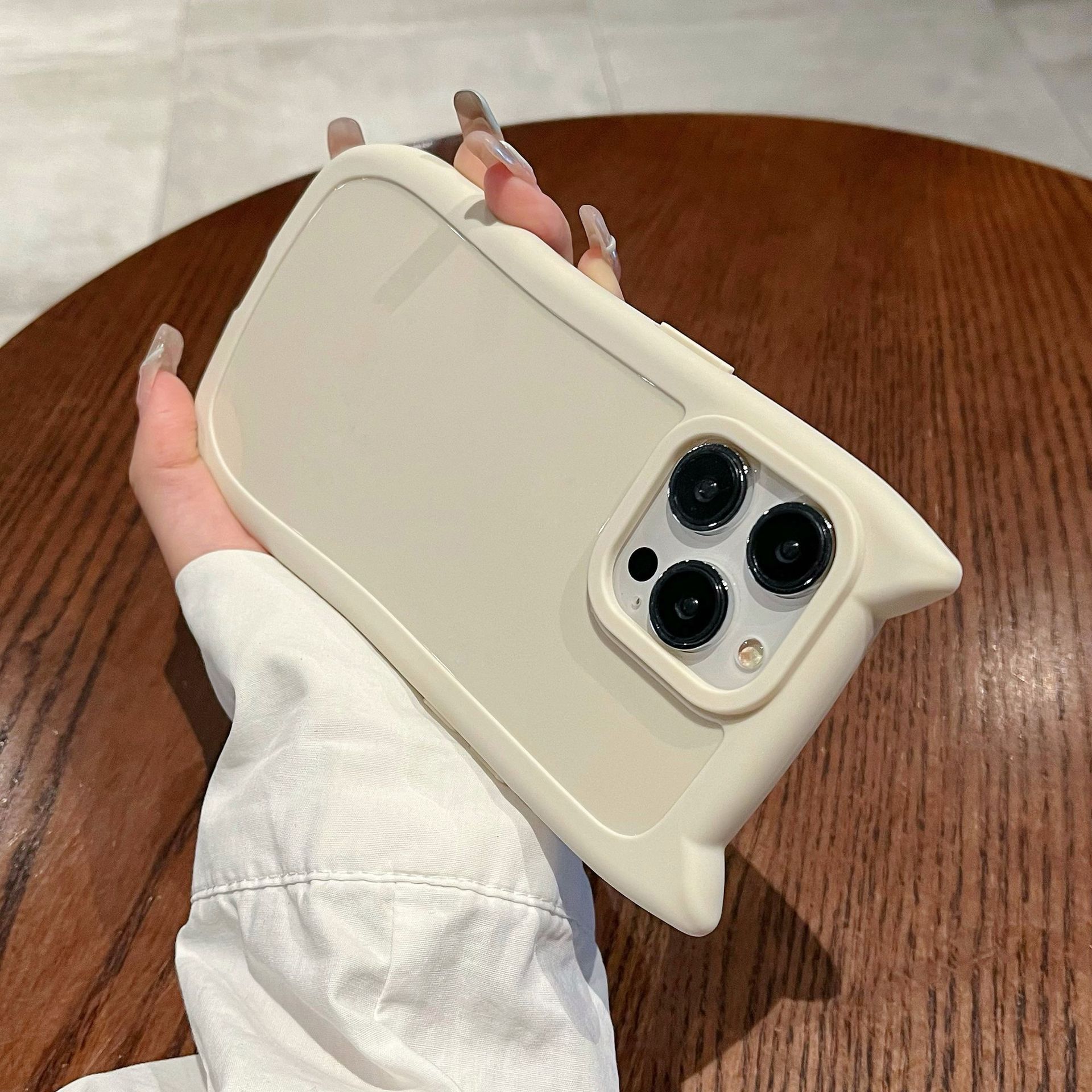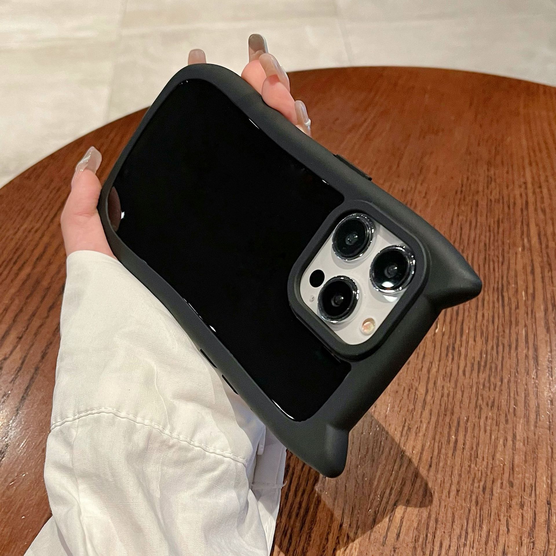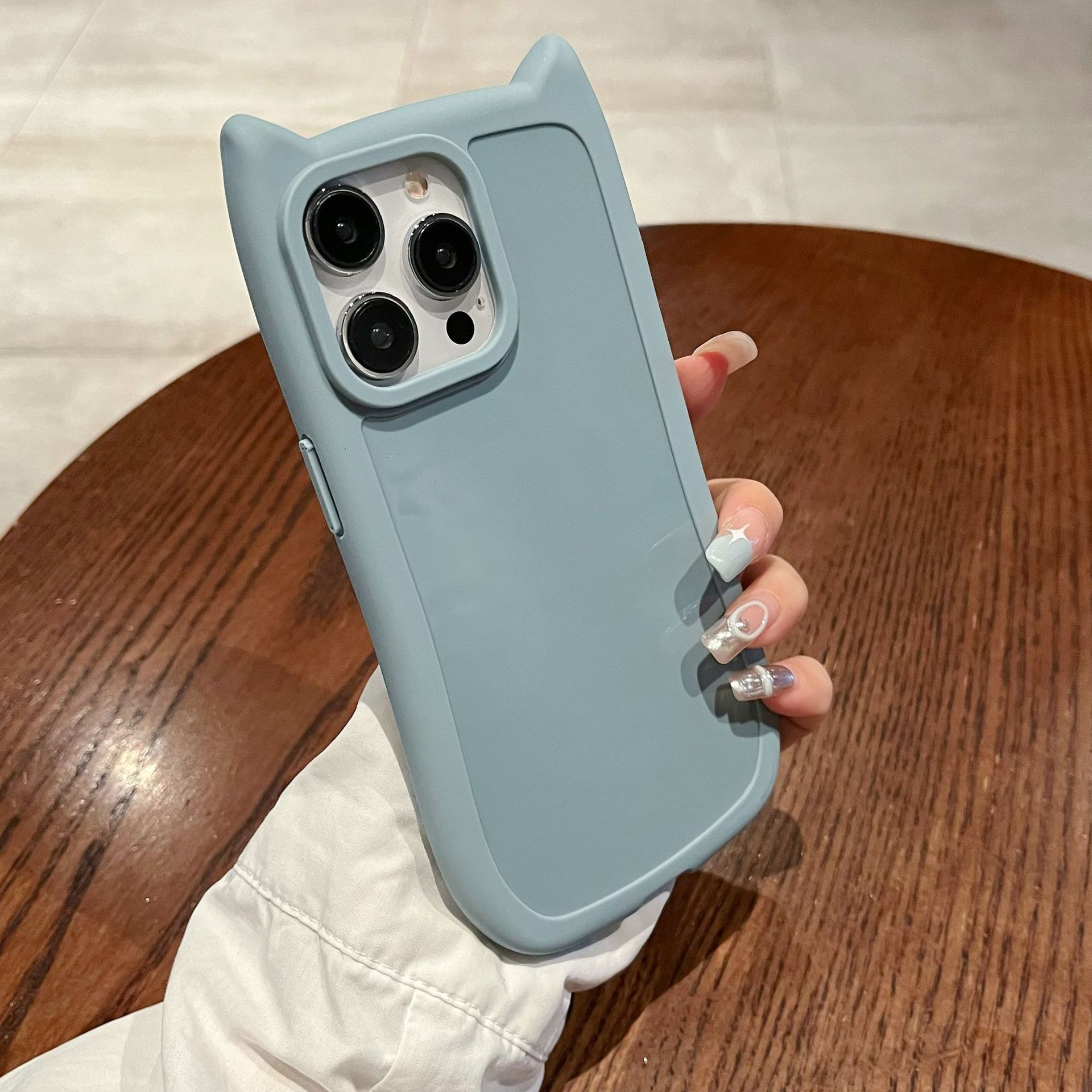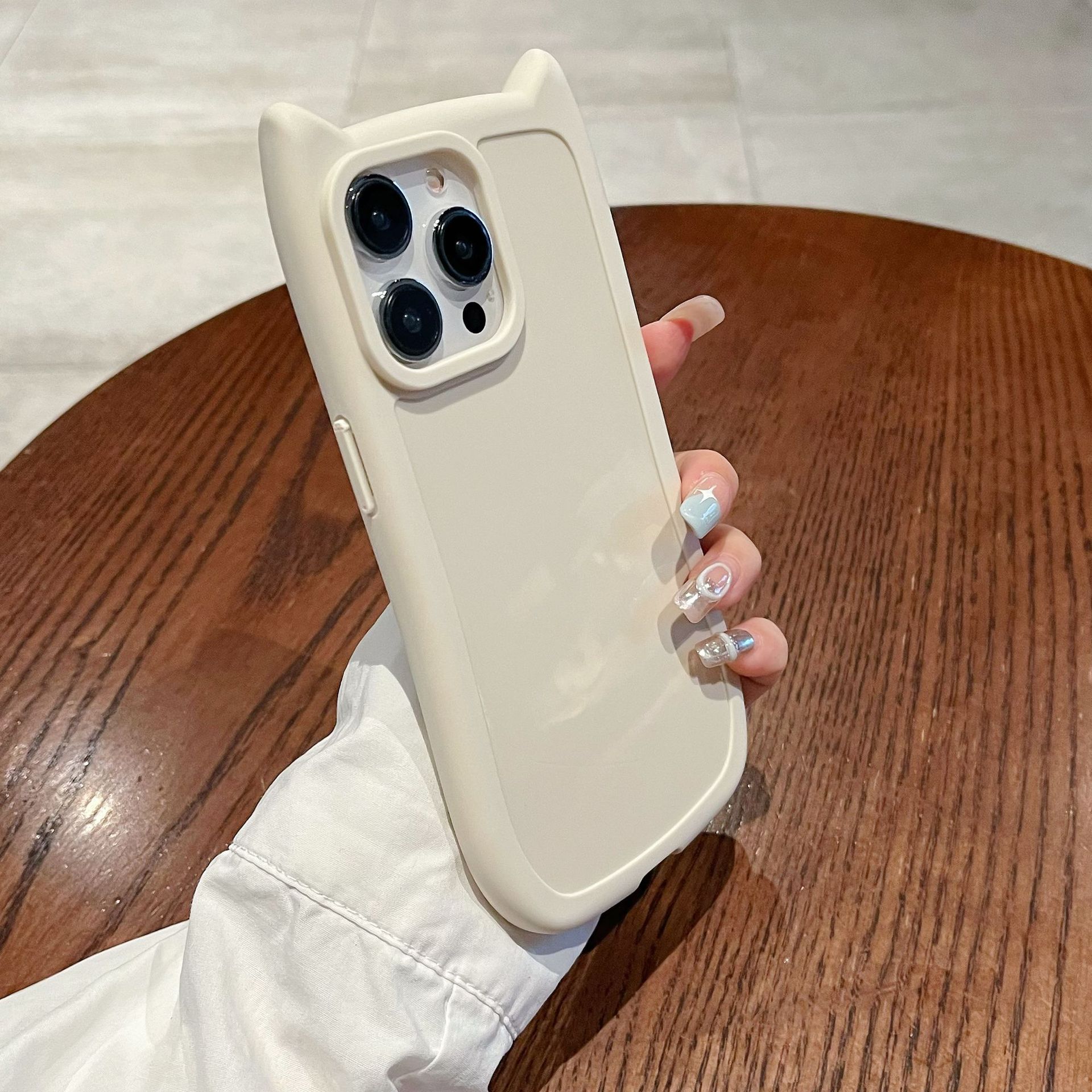 Cute Cartoon 3D Cat Ear Phone Case For iPhone 16 Plus 15 14 13 12 11 Pro Max Animal Design Matte Soft Silicone Protection Cover