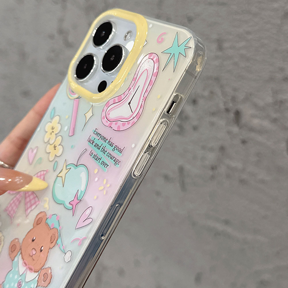 Cute Cartoon Bear Mobile Phone Case for IPhone 17 16 Promax 15 14 13 12 11 IPhone16pro Bow Bracelet Protective Case