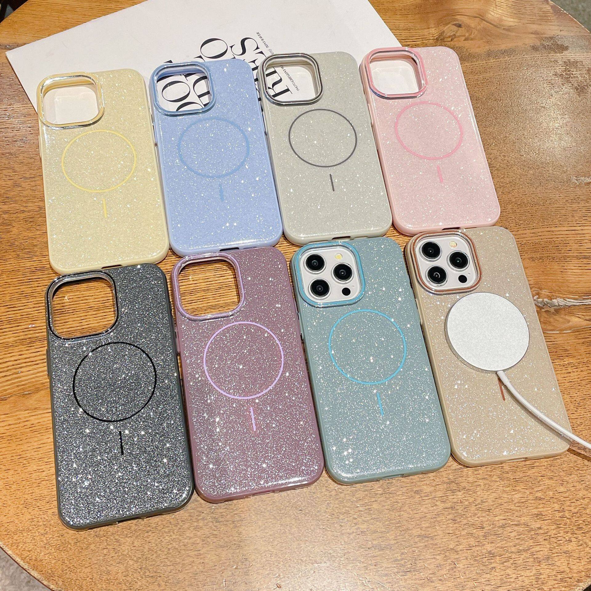Glitter Bling For Magsafe Phone Case For iPhone 16 15 14 13 Pro Max Plus Magnetic Wireless Charging Fashion Candy Cover