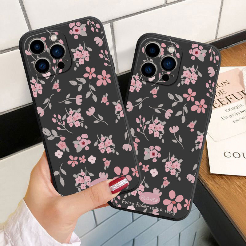 Green Leaf Pink Flower Print Phone Case For iPhone 11 12 13 14 15 16 17 Pro Max Air XS X XR 7 8 Plus 16e Shockproof Soft Cover