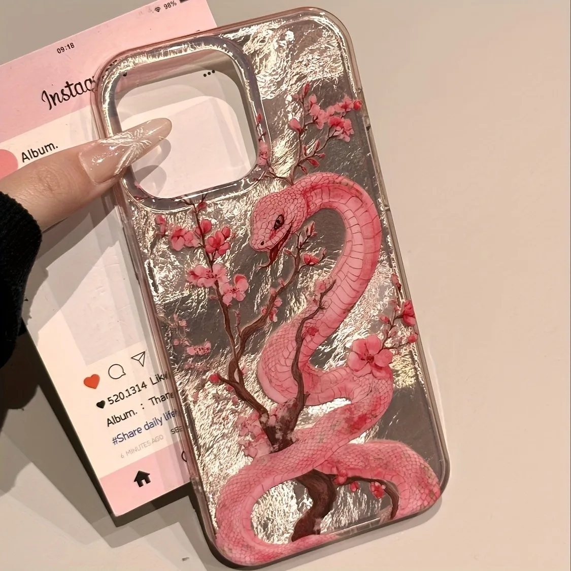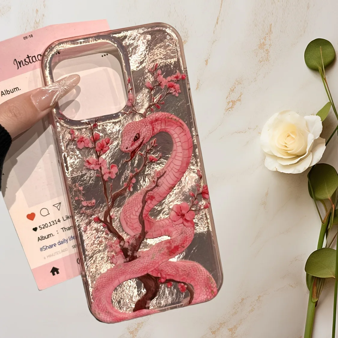 Illustration Plum Blossom Pink Snake Phone Case For iPhone 16 15 14