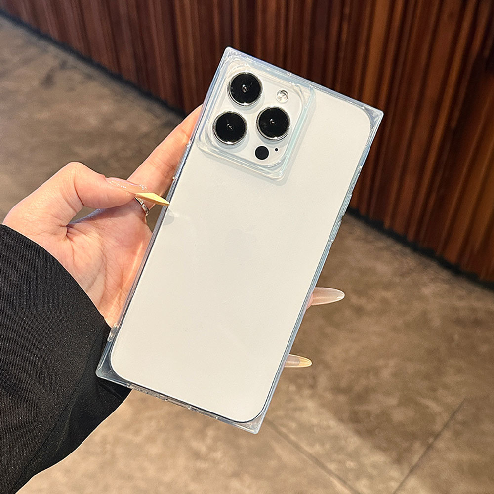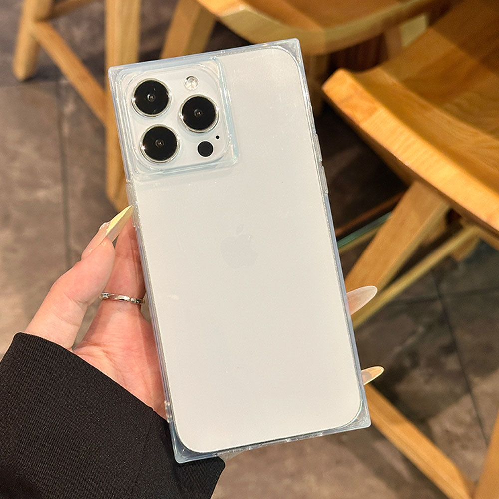 Luxury Ice Cube Square Soft Siicone Clear Case for iPhone 16 15 14 Pus 13 12 11 Pro Max Shockproof Crystal Rubber Phone Cover