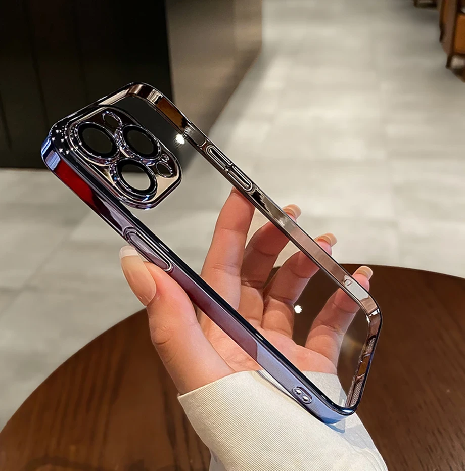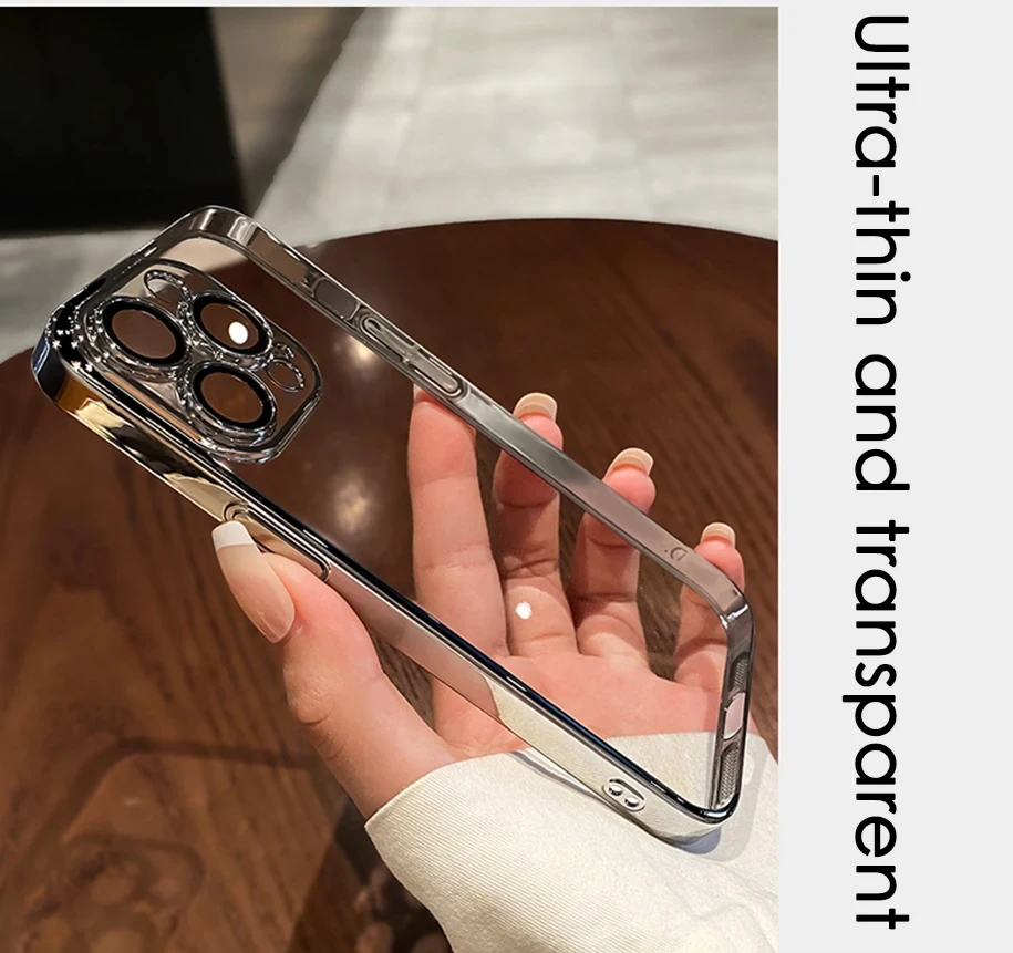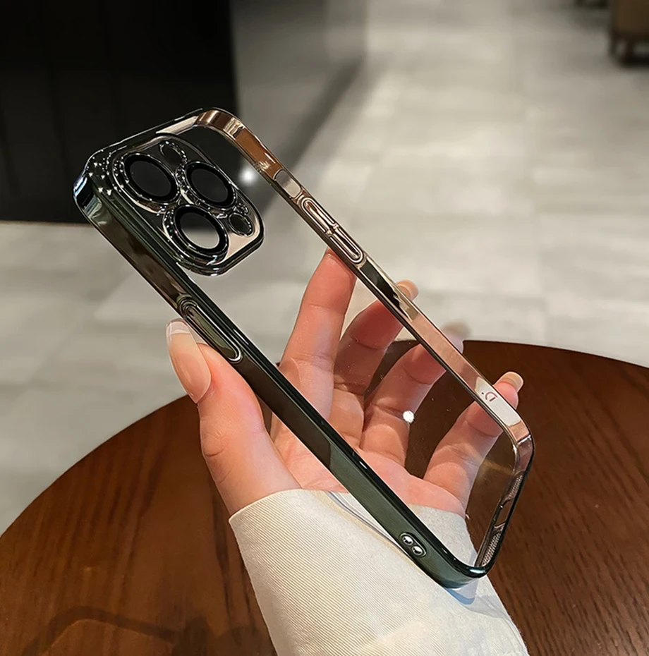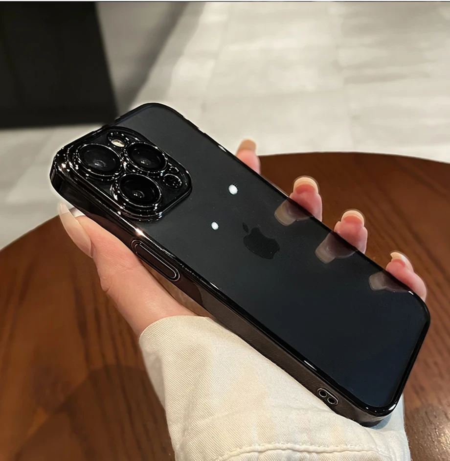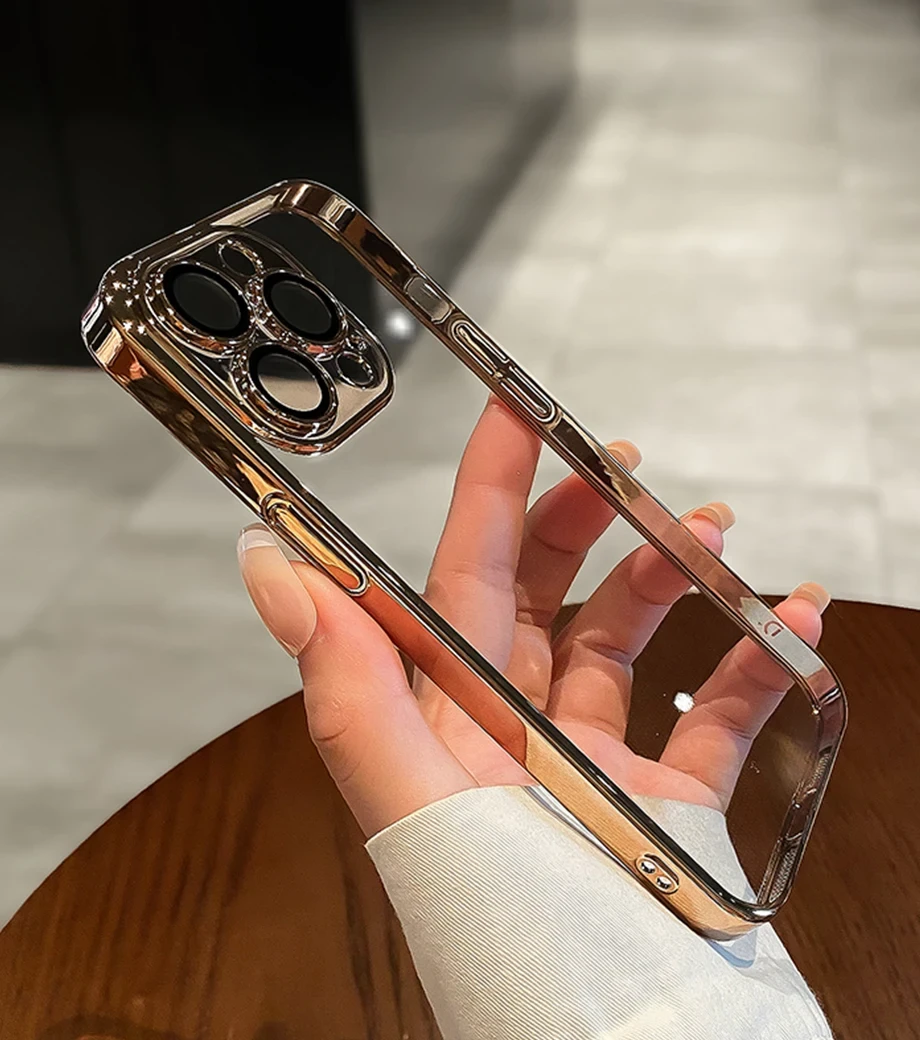Luxury Plating Clear Silicone Phone Case For iPhone 16 15 14 13 12 11 Pro Max Plus X XR XS Mini Lens Protection Case Back Cover