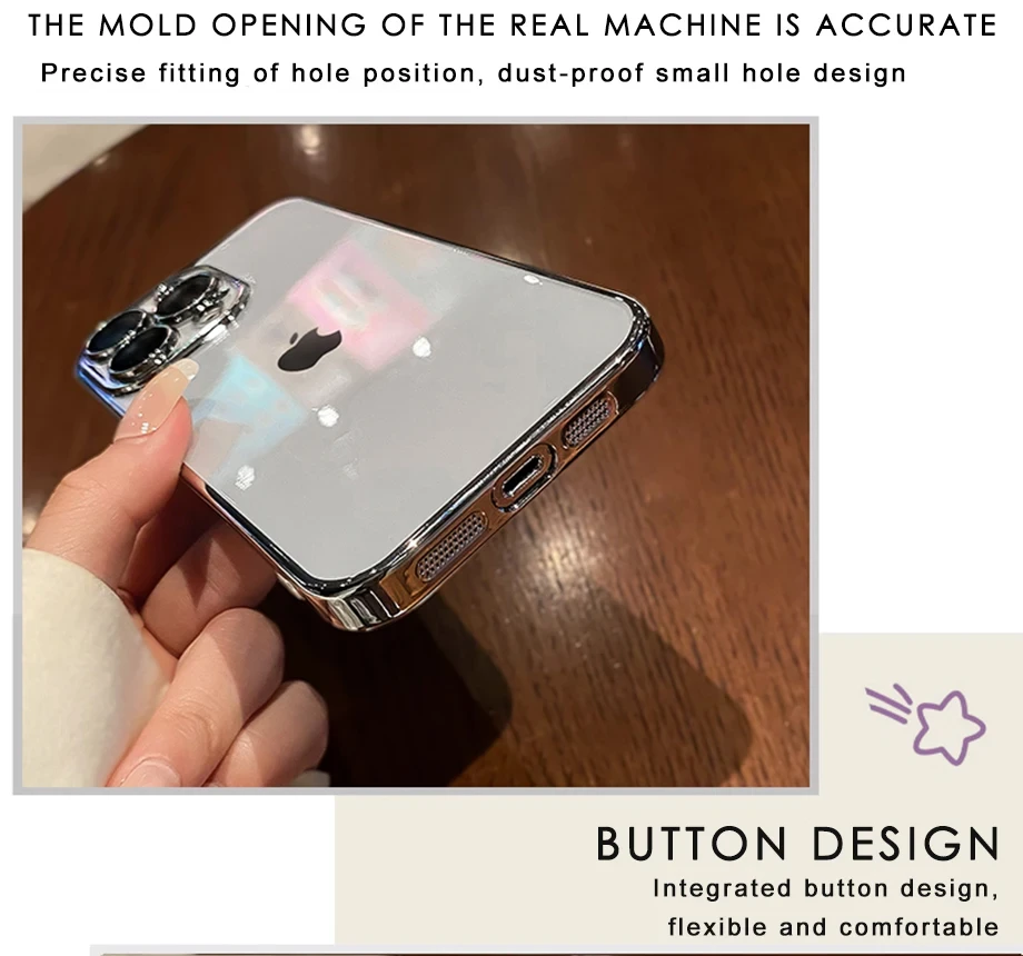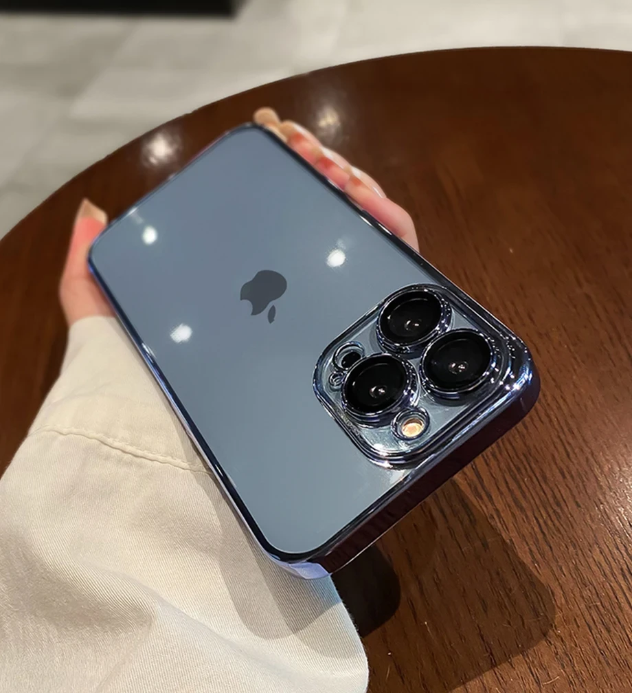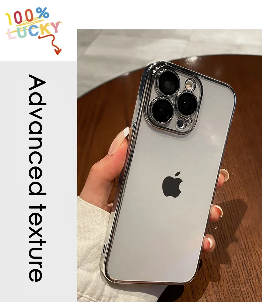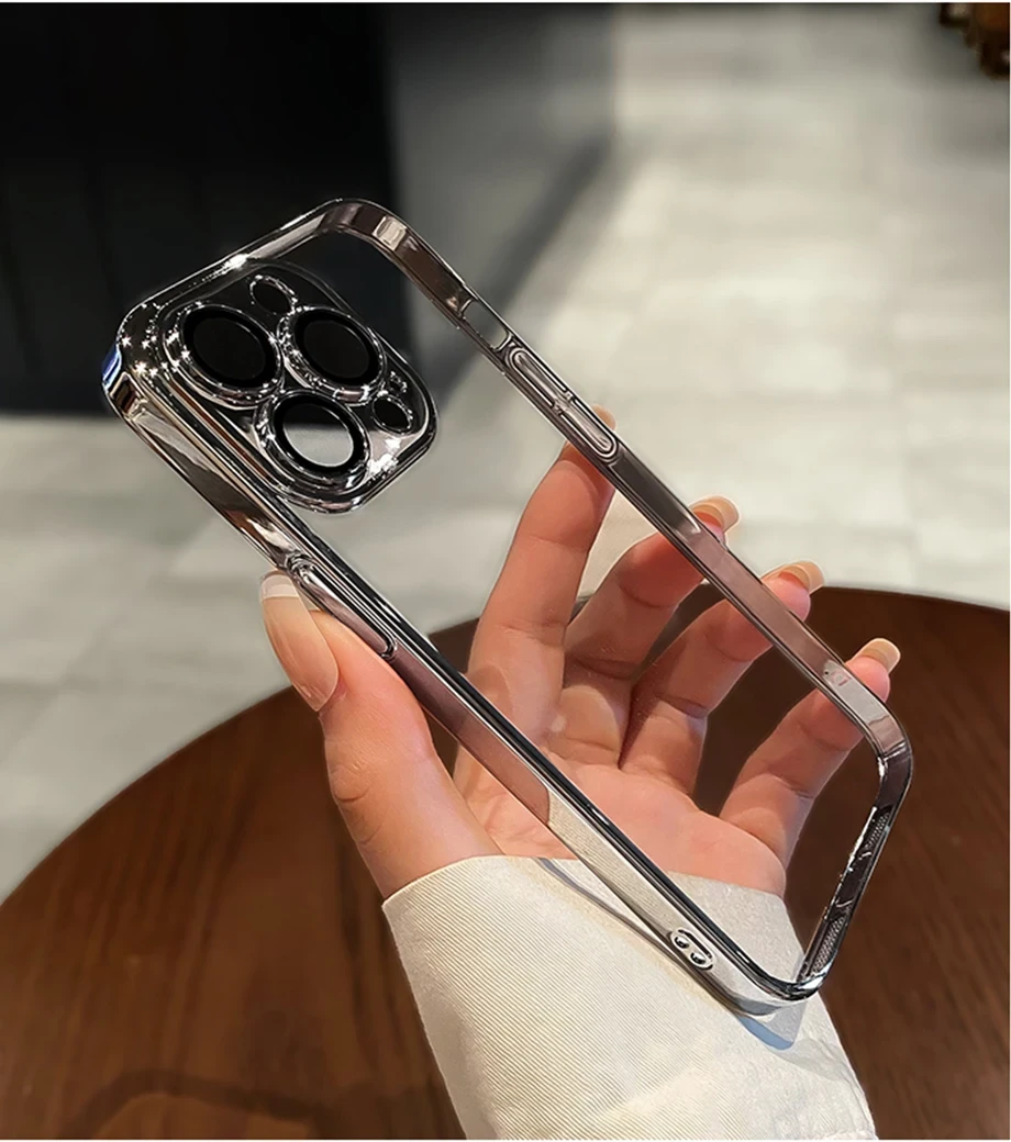 Luxury Plating Clear Silicone Phone Case For iPhone 16 15 14 13 12 11 Pro Max Plus X XR XS Mini Lens Protection Case Back Cover