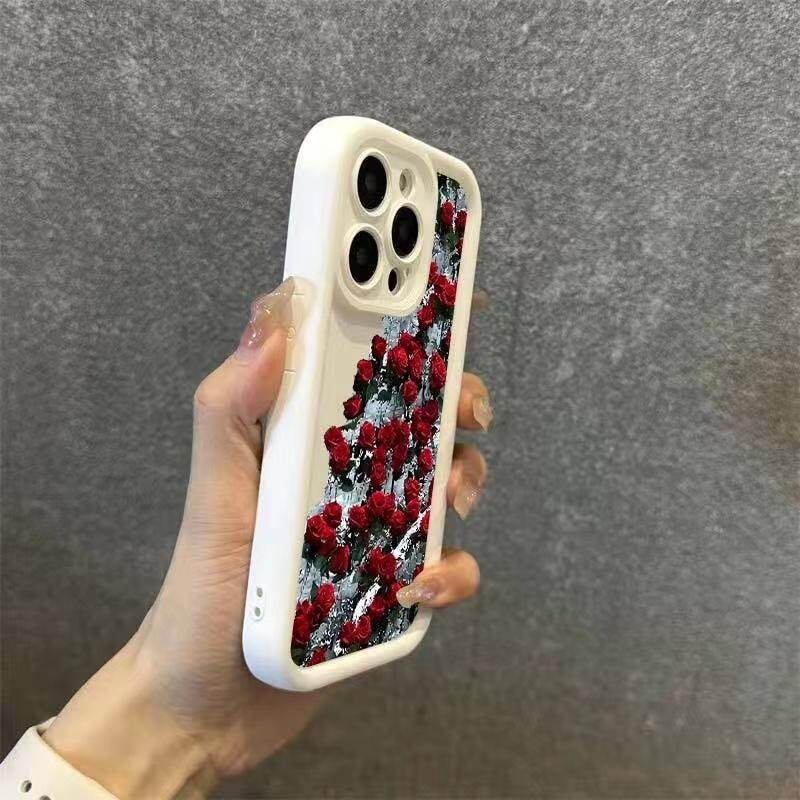 Red Rose Flower Silicone Phone Case for IPhone 16 Pro 16E 15 14 13 12 11Pro XR Max Shockproof Soft Cover
